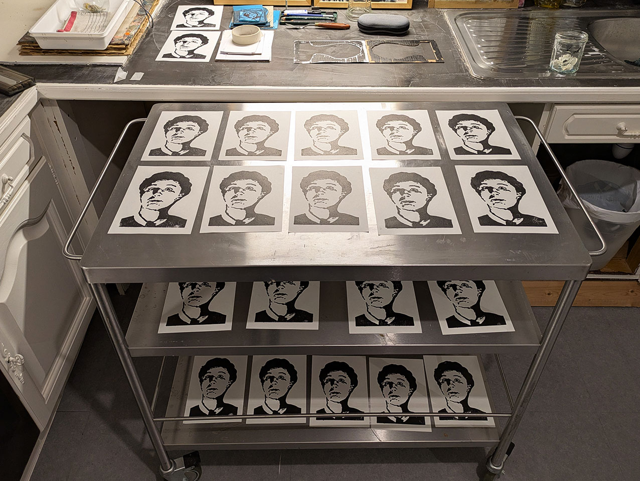 => 20 tirages gravures linoléum. A3, papier Canson 90g, encre noir Cranfield à l’huile + quelques E.A. Quelques tirages, bientôt, dans la boutique.
